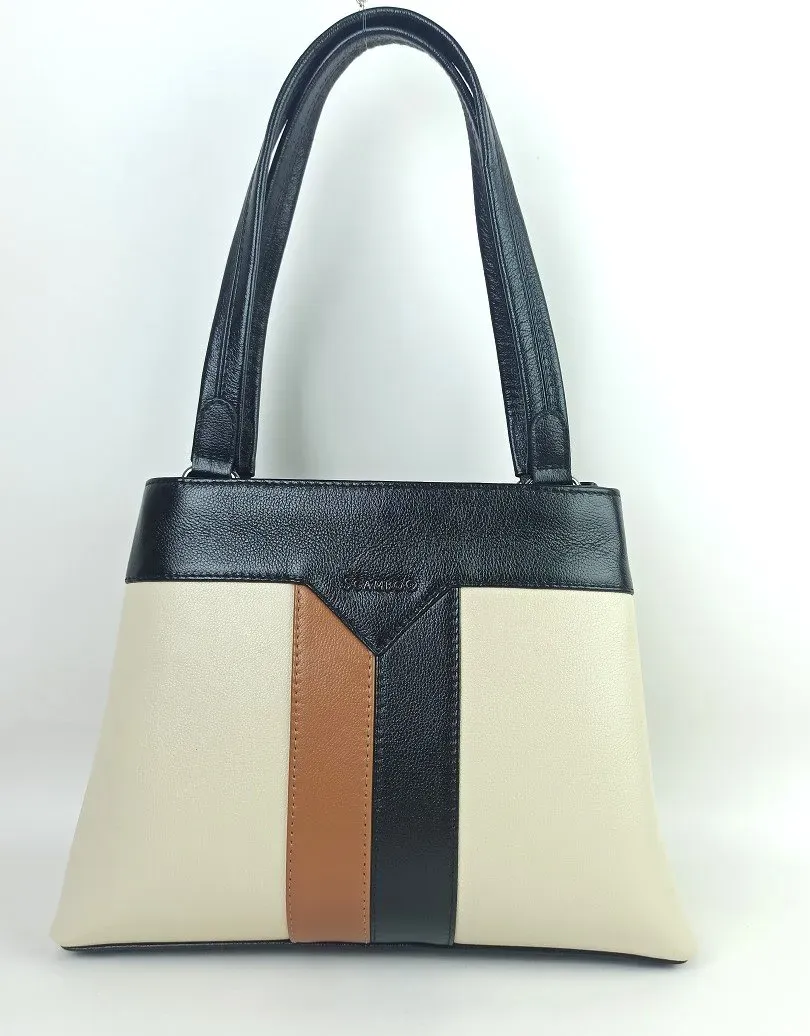 Com visual elegante e contrastes modernos, a Bolsa de Ombro Scamboo em couro legítimo é a escolha certa para quem busca sofisticação com funcionalidade. O tom gelo com detalhes em preto e caramelo traz um toque contemporâneo à peça, ideal para o dia a dia na cidade. Seu tamanho grande oferece o espaço ideal para uma rotina prática e bem organizada.